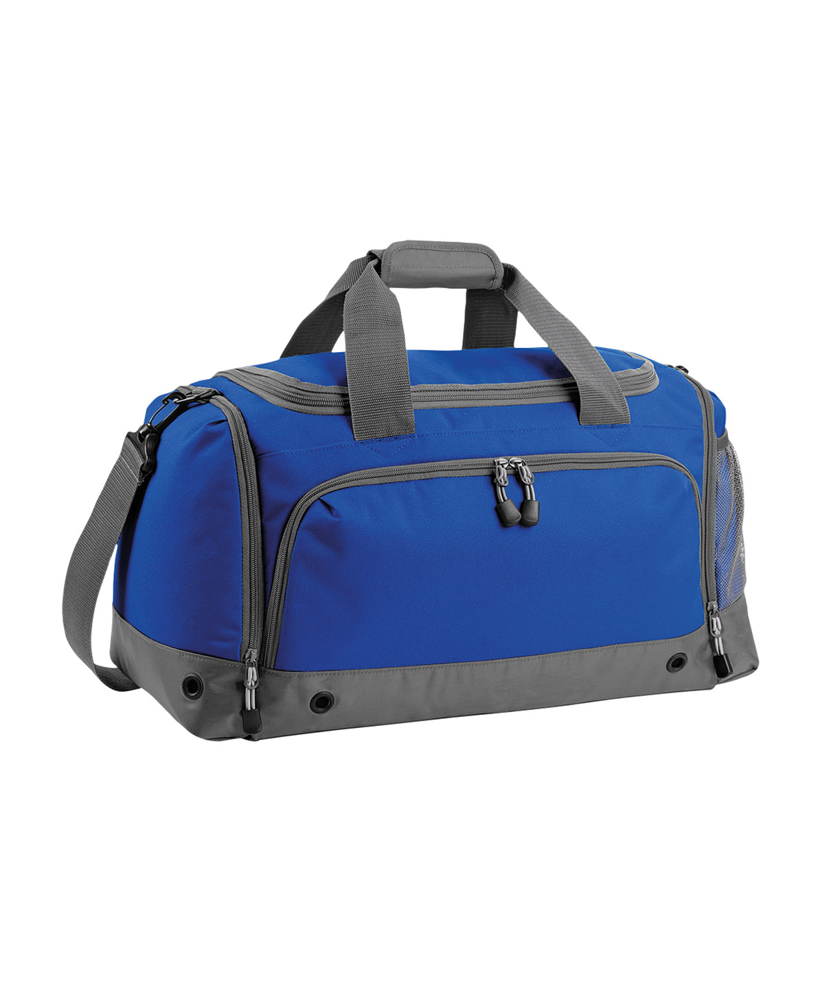 TearAway label for ease of rebranding. Water-resistant fabric. Detachable adjustable shoulder strap with pad. Shoe tunnel. Wet pocket. Internal valuables pocket. External mesh pocket. Zippered end pockets. Protective base feet. Metal ventilation eyelets. Padded hand grip.