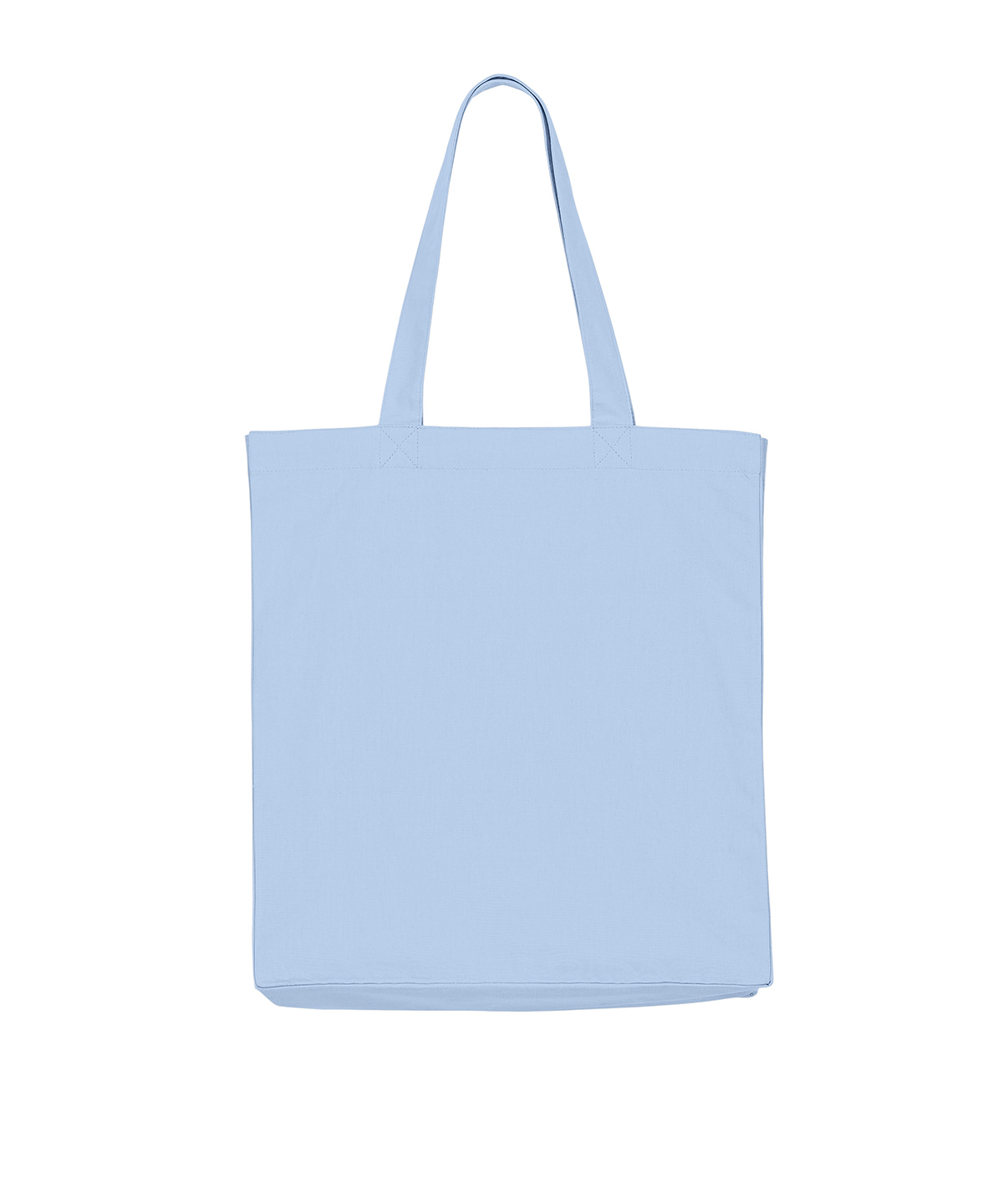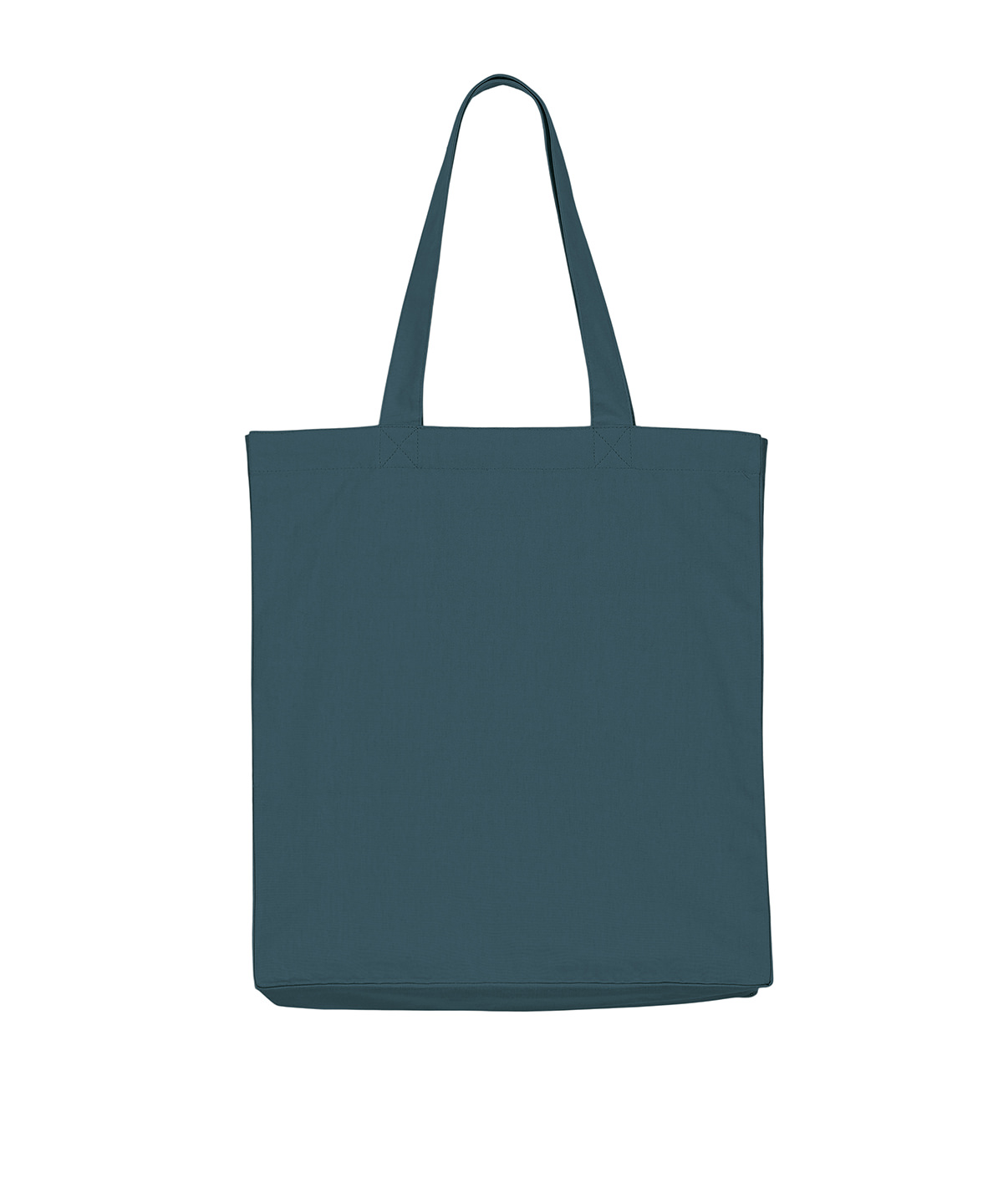 Midweight tote bag. Folded hem at top edge. Bottom and side soufflé. Long self-fabric handles with cross-stitch for reinforcement. Inside self-fabric pocket. Single-needle stitch at top edge.